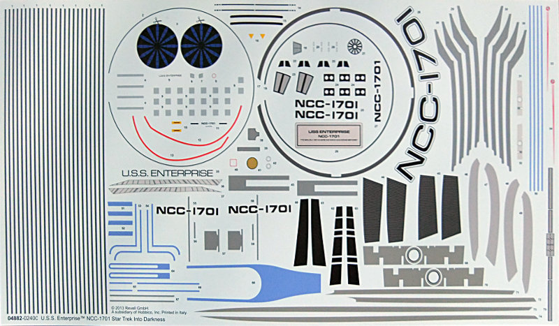 Und noch ein Vorteil, besonders für die Fans der Serie, welche mit Modellbau sonst nicht so viel am Hut haben: Da auf den riesigen Decalbogen neben den Identifikationszeichen fast alle Farbnuancen gedruckt sind, kann auf eine umfangreiche Bemalung durchaus verzichtet werden. Für die Präsentation des Modells gibt es auch einen angemessenen Ständer.
