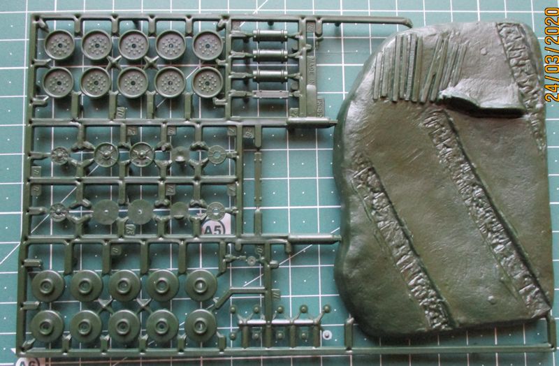 Schön ist am Bausatz die beiliegende kleine Grundplatte und eine Figur so dass man aus dem Kasten ein kleines Diorama bauen kann.
