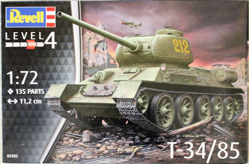 Vorbild: : Um den T-34 auf dem gleichen hohen Niveau wie die neuesten deutschen Panzer zu halten, wurde der Auftrag erteilt, eine neue Kanone in den Panzer einzubauen. Da zu dieser Zeit mehrere Kanonen mit einem Kaliber von 85 mm entwickelt wurden, bot es sich an, eine davon zu verwenden. Die Fabrik "Krasnoje Sormowo" und das Ural-Panzerwerk "Stalin" stellten Versuchsfahrzeuge her. Beide verwendeten dazu Kanonen der Muster D-5T, LB-1, S-50 sowie S-53. Das Ural-Panzerwerk adaptierte außerdem den für den KW-85 vorgesehen Turm. Um den neuen Turm aufnehmen zu können, musste der Durchmesser des Drehkranzes von 1420 mm auf 1600 mm vergrößert werden. Nachdem die Erprobung abgeschlossen war, begann die Serienfertigung. Als Waffe war die S-53 vorgesehen, allerdings mussten die ersten Modelle von Januar bis März 1944 mit der D-5 ausgerüstet werden. Die S-53 war zum Produktionsstart des T-34/85 noch nicht einsatzbereit. Später wurde sie als SIS-S-53 die Hauptwaffe des T-34/85. Mit dem Erscheinen der deutschen Panzer V (Panther) und Panzer VI (Tiger) verlor der T-34 einen Teil seines Schreckens für die Deutschen. Die zahlenmäßige Überlegenheit des T-34 glich die höhere Qualität und die bessere Bewaffnung der späten deutschen Kampfpanzer jedoch aus. Die Produktionszahlen des T-34 lagen etwa neunmal so hoch wie die des Panthers (54.600:6.000).