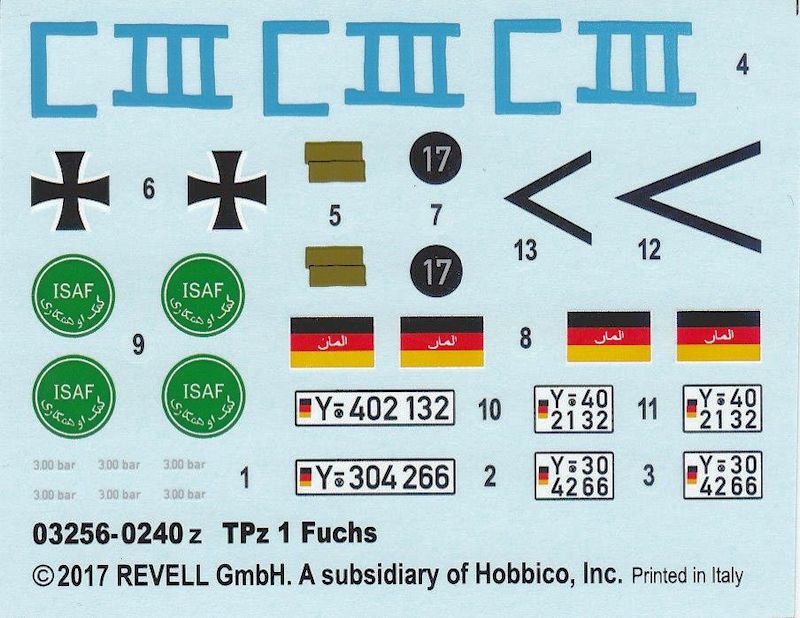 Bemalungsvarianten: Revell bezieht sich auf das eigene Farbprogramm. Hier kann zwischen den Email und den Aqua Color Farben gewählt werden. Tarnverlauf und die Anbringung der Decals sind auf zwei Farbseiten gut erklärt. Der versatzfrei gedruckte Decalbogen erlaubt den Bau von zwei Fahrzeugen: