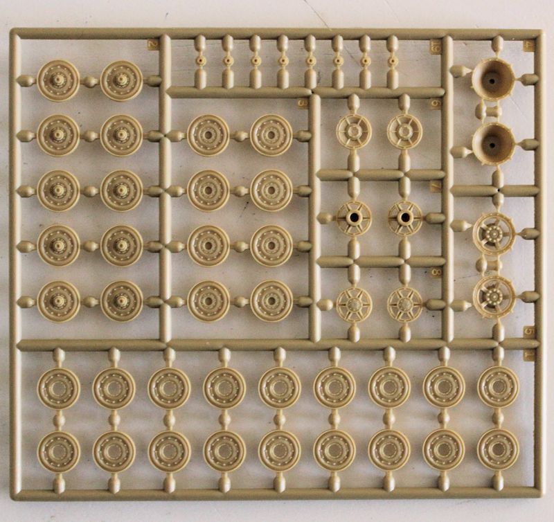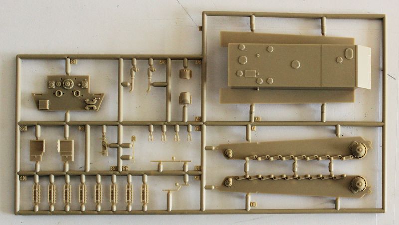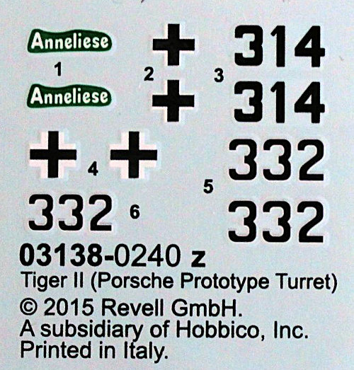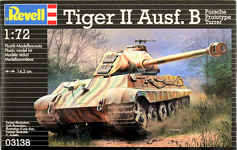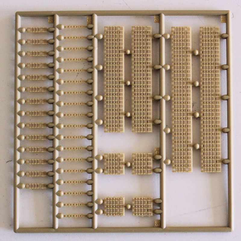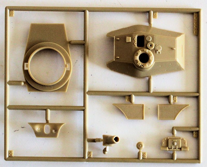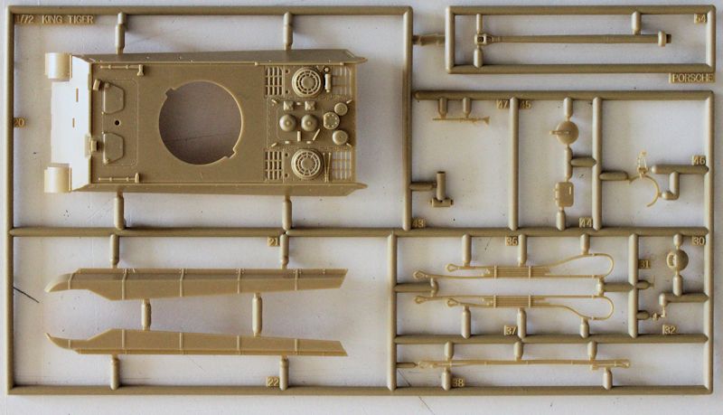 Die Teile sind sauber sowie gratfrei widergegeben und alle Teile bzw. Oberflächen gut detailliert. Zum Teil sind die Werkzeuge schon auf das Modell aufgeprägt. Die beiden Abschleppseile und das Seil zum Aufziehen der Kette liegen als separate Teile bei, wodurch das Bemalen sehr vereinfacht wird. Die Ketten des Fahrzeuges werden aus Segmenten und Einzelgliedern zusammengesetzt. Aus dem Bausatz lässt sich nur eine frühe Variante des Tiger II bauen, da lediglich die einteilige Kanone im Bausatz enthalten ist. Die Mündungsfeuerbremse sollte mit einem passenden Bohrer aufgebohrt werden.