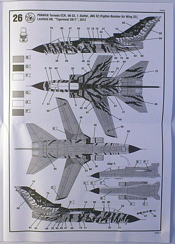 Das Vorbild (aus Wikipedia) Nach der Fertigung der letzten IDS wurden durch die Luftwaffe 35 Tornado ECR (Electronic Combat Reconnaissance; dt: Elektronische Kampfaufklärung) bestellt. Die Auslieferung dauerte von 1990 bis 1992. Die spezielle Missionsausstattung umfasst verbesserte Cockpit-Anzeigen, einen nach vorne gerichteten Infrarotsensor und das Emitter Location System des Herstellers Raytheon TI Systems – ein System, mit dem die präzise Positionsbestimmung von Radarsystemen möglich ist.[7] Die Bordkanonen wurden aufgrund des erhöhten Platzbedarfs für die Avionik entfernt. In den neuen Luftfahrzeugen wurden leistungsgesteigerte MK-105-Triebwerke verwendet.