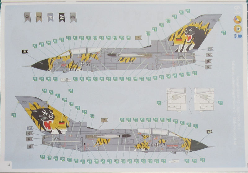 Der Decalbogen ist tadellos gedruckt. Es gibt nur eine Decalvariante aber dafür findet man alles was an Wartungshinweisen am Tornado angebracht ist. Die Farbhinweise sind für das hauseigene Revell-System. Hier darf auch wieder gemischt werden.