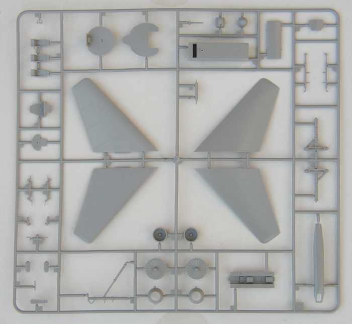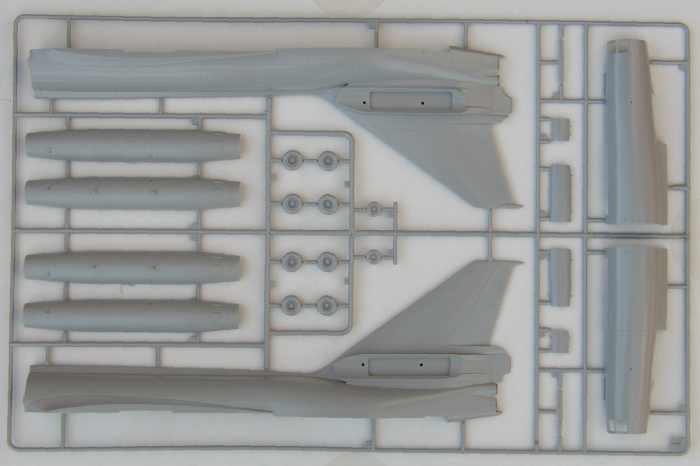 Bausatz: Hier gibt es keine Überraschungen. Die vier grauen Spritzlinge und der Rahmen mit den Klarsichtteilen sind schon von Italeri und ESCI bekannt. Der Bausatz erschien Anfang der 90er Jahre bei ESCI und war für die damalige Zeit gar nicht schlecht. Das Manko besteht hauptsächlich im Cockpitbereich, denn dort ist genug Raum für Detaillierungen. Die Schleudersitze haben kaum ähnlichkeiten mit den Originalen. Allerdings und das sei hier ausdrücklich vermerkt, ist nach der Montage der Kanzel kaum noch was zu sehen.