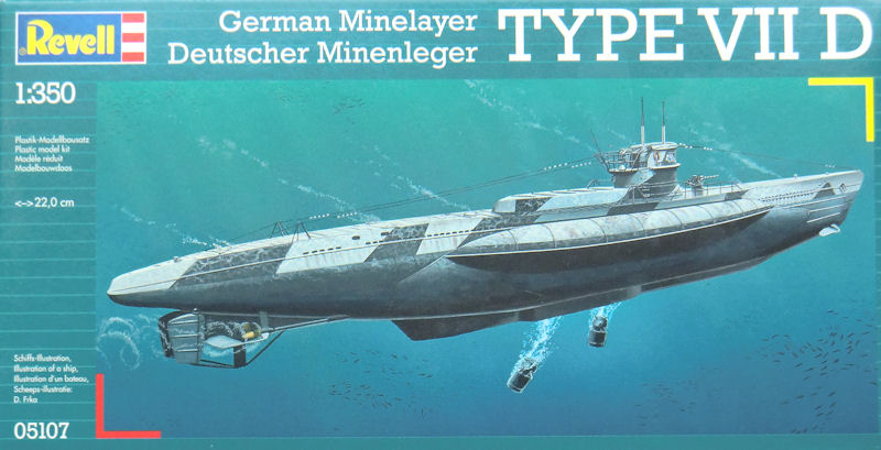 Bausatz: Der Maßstab 1/350 erfreut sich seit einiger Zeit bei Marinefahrzeugen einer gewissen Beliebtheit. So ist es auch nicht verwunderlich, dass Revell auch das deutsche WK II U-Boot Typ VIID im kleinen Maßstab erschienen ist. In 1/144 ist es schon erhältlich und für den Maßstab 1/72 gibt es den Umbausatz von Special-Navy.