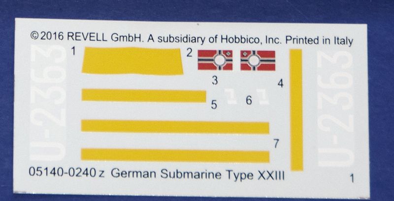 Vorbild: Die U-Boote vom Typ XXIII waren kleine Küsten-U-Boote, die während der letzten Jahres des Zweiten Weltkrieges entwickelt wurden. Zum Unterschied zu früheren U-Booten waren sie hauptsächlich auf eine lange Unterwasserfahrleistung ausgelegt. Die kurze Entwicklungs- und Bauzeit führte aber zu Problemen und von den 61 fertiggestellten Booten kamen nur sechs zum Einsatz. Die waren aber ziemlich erfolgreich und versenkten fünf alliierte Schiffe. Siehe Wiki