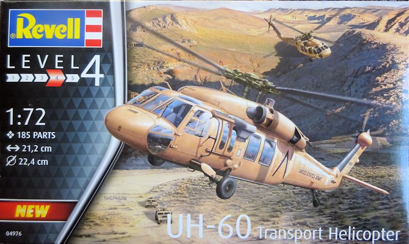 Vorbild: Die Sikorsky H-60 - Familie lösten Ende der 1970er Jahre die Bell UH-1 ab (Erstflug am 17. Oktober 1974). Es flossen Erfahrungen aus dem Vietnamkrieg in Bezug auf die Überlebensfähigkeit ein. Dazu gehört eine Panzerung des Pilotensitzes, ein für hohe Sinkgeschwindigkeiten konzipiertes Fahrwerk und gegen 23-mm-Geschosse widerstandsfähige Rotorblätter. Die Haupttanks sollen auch bei Treffern bis 12,7 mm dicht bleiben. Der Heli kann elf voll ausgerüstete Soldaten transportieren. Von der ersten Serienausführung UH-60A wurden 980 Hubschrauber von 1978 bis 1989 ausgeliefert.