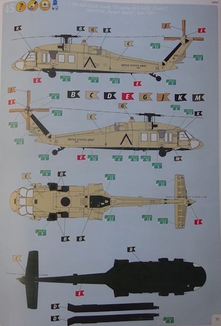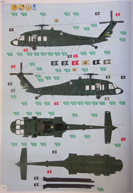 Bauanleitung/ Bemalung: Die übersichtliche Bauanleitung führt in 44 Schritten zum Ziel. Farbangaben wie immer im hauseigenen System. Der kleine Decalbogen ist tadellos, aber matt gedruckt. Er erlaubt die Darstellung von zwei US Army Maschinen.