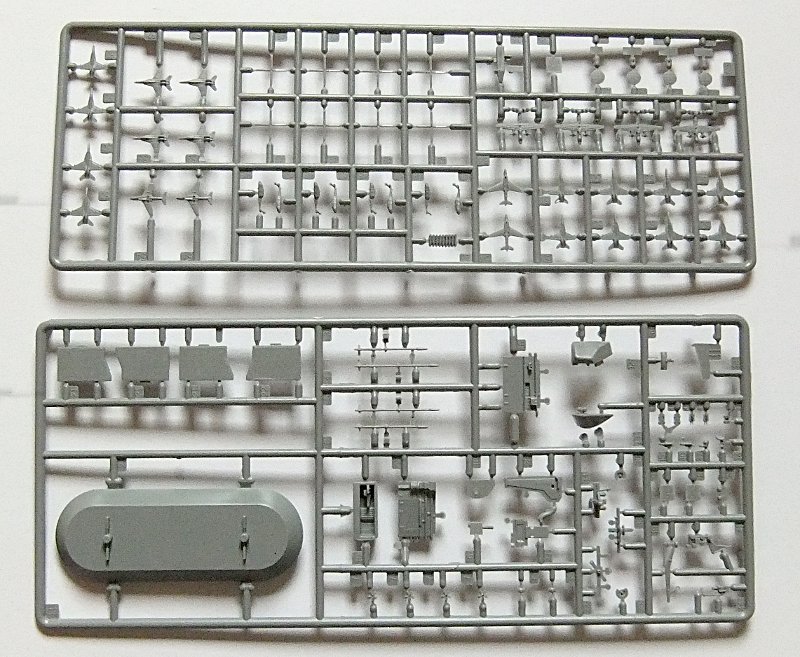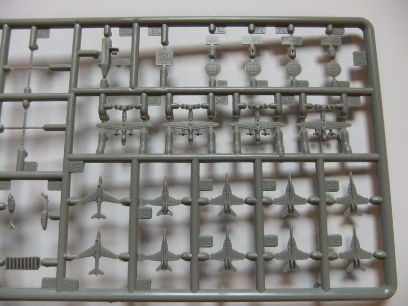 Gerade das bei Flugzeugträgern ins Auge fallende Flugdeck besticht mit feinsten Gravuren. Um dieses noch ausgefeilter zu präsentieren, stehen für sämtliche Markierungen Decals zur Verfügung. Auch die beigegebenen Flugzeuge: F-18 Hornet, EA-6B Prowler, E-2 Hawkeye und Hubschrauber vom Typ MH-60 Sea-Hawk können überzeugen. Ein Vergleich mit Fliegern des 700er Maßstabs lassen auch in dem Bereich eine korrekte Verkleinerung zu 1:1200 erkennen. Allerdings wirken die Gravuren bei diesen kleinen Maschinchen doch etwas übertrieben.