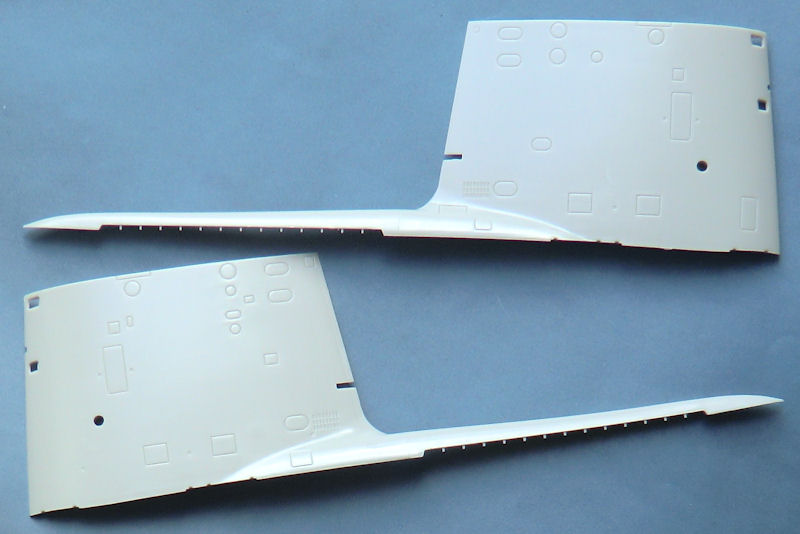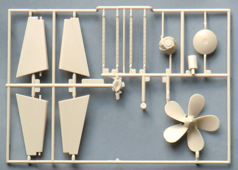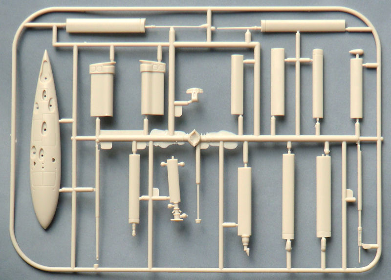 Die Teile sind tadellos abgespritzt. Graht gibt es an einigen Bauteilen. Der Rumpf ist in vier Stücke zerlegt und damit hätte der Karton fast in der Länge halbiert werden können. Die Ruder können beweglich montiert werden. Gleiches gilt auch für die Schiffsschraube. Der Aufbau der Teile ist sinnvoll und mit recht wenig Aufwand kann hier ein imposantes U-Boot-Modell entstehen.