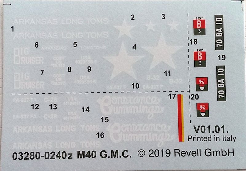Bausatz: Der M40 G.M.C. ist eine Wiederauflage der 2006er Wiederauflage des Matchboxmodells. Diese wird mit einer kleinen passenden Dioramenplatte geliefert, die dem Modell etwas mehr "Leben" verleiht.