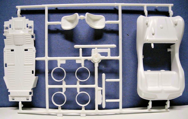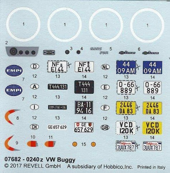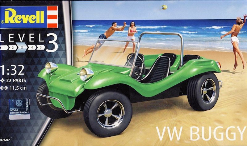 Bausatz: Getreu nach dem alten Motto: "Irgendwann kommt alles wieder", so auch der VW Buggy im Maßstab 1:32 von Revell. Bereits vor über 45 Jahren erschien der gute alte VW Buggy Kit schon bei Revell. Konzipiert war er damals wie heute als einfacher "Snap Together" und wurde gerne für die Carrera Bahn verwendet. Leider sind die alten Vinyl Reifen mit der Aussparung für den "Weißwandring" nicht mehr vorhanden, sie wurden durch weichere Gummireifen ohne Aussparung ersetzt, warum auch immer? Dafür beinhaltet heute der Bausatz sehr gute Decals für Armaturen, Kennzeichen und Reifen-Weißwandringe. Ansonsten wurde der alte Bausatz so übernommen wie er 1970 erschien, damals in orangen- heute in weißen Plastikteilen und leider wurden die Chromparts durch metallgraue Bauteile ersetzt..