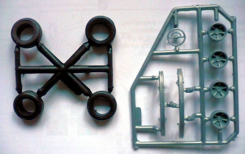 Bausatz: Der VW ist ein alter Bekannter. Erstmalig 1970 erschienen, war er dann nach einigen Jahren der Abwesenheit 1981 wieder für kurze Zeit erhältlich. 2016 können wir uns auf diese Wiederauflage freuen. An der Qualität hat sich nicht viel geändert. Lediglich bei den Rädern würde ich behaupten, dass diese einer Überarbeitung erfahren haben. Vinylreifen und Felgen im Sportdesign ähnlich den Fuchsfelgen der 1970er Jahre. Meiner Erinnerung nach waren diese wie beim Opel GT komplett aus Plastikspritzguss - sie mussten damals für Umbauten meiner Carrerabahn herhalten. Mit dem jetzigen Erscheinen wurde der Bausatz dem Level 3 zugeordnet.