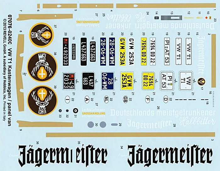 Dank der 16 –seitigen, sehr übersichtlichen Bauanleitung (mit ausführlichen Farbangaben) dürfte der Zusammenbau dem Anfänger, wie auch dem fortgeschrittenen Modellbauer keine Schwierigkeiten bereiten. Erwähnenswert bei diesem Bausatz ist die Beigabe von Decal Zierstreifen für die seitliche Abgrenzung an der oberen und unteren Karosse und die Jägermeister Werbelogos.