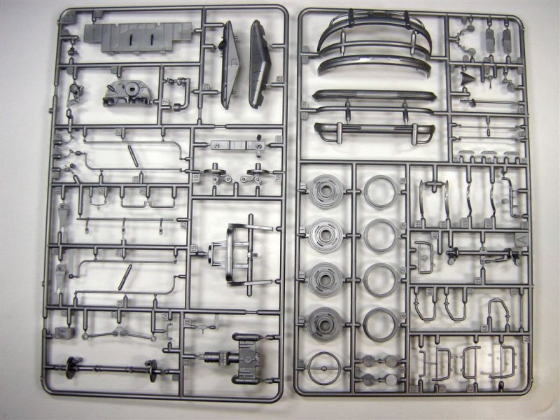 Da mich (und viele andere Automodell-Sammler) dieser alte Revell Bausatz schon immer faszinierte, war die Freude um so größer dieses herrliche Teil auf dem Revell-Stand zu erblicken. Nach öffnen der attraktiven Verpackung hält man über 170 sauber gefertigte Bauteil in Händen. Allein der beigefügte Decal-Bogen ist eine klasse für sich, so enthält er unter anderem auch die doch etwas schwierig zu bemalenden Zierstreifen.