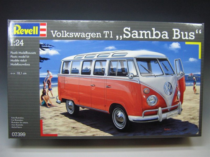 Bausatz: Auch die Präsentation des VW "Samba Bus", am Neuheiten Stand der Fa. Revell auf der diesjährigen Spielwarenmesse in Nürnberg, stimmte die Besucher nachdenklich. Dachten doch viele (so auch ich) das der hier gezeigte VW T1 Bus eine erneute Übernahme aus Hasegawa Formen ist. Aber auch hier wurden wir eines besseren belehrt, es ist ein komplett neues Modell! Auch wenn man sich scheinbar an den alten Formen des in den 50er Jahren erschienen Volkswagen Micro Bus orientierte, die aber komplett überarbeitet wurden.