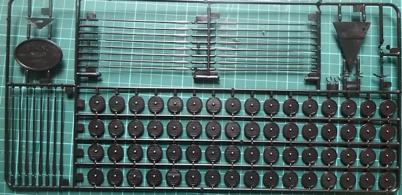 Der nächste Spritzling enthält fast die Hälfte der Bausatzteile. Dies sind die 64 Schilde, ein Großteil der 32 Riemen und ein Teil des Decks. Die Schilde hätten etwas dünner ausfallen können.