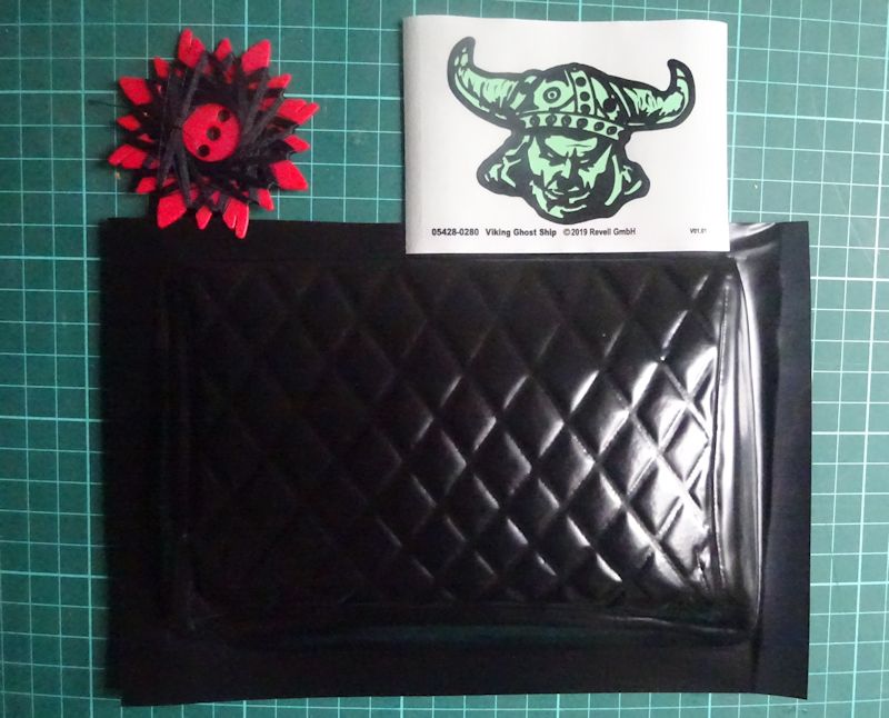 Das Segel liegt dem Bausatz tiefgezogen bei. Vervollständigt wird der Bausatz durch einen Sticker für das Segel sowie das Takelgarn.