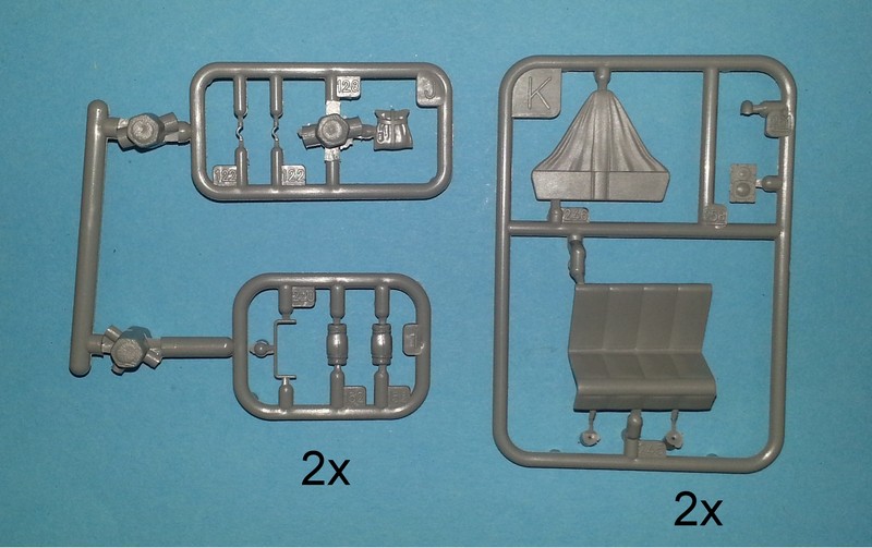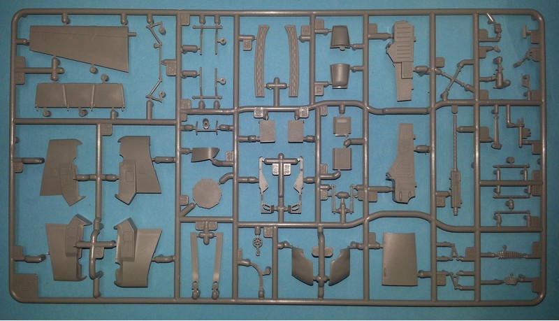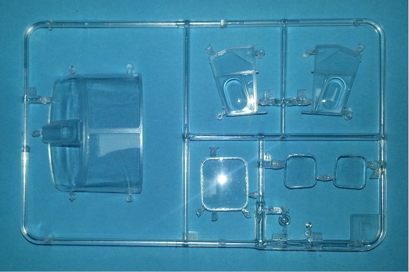 Der Kit bietet die Option, alle Türen geöffnet oder geschlossen zu bauen. Bemerkenswert finde ich auch die separaten Scheibenwischer. Als nächstes kommt das Fahrwerk an die Reihe. Eine Besonderheit des Vorbildes ist ja, dass zum Betrieb auf Schiffen das Hauptfahrwerk etwas gedreht wird, so dass die Räder schräg stehen(siehe das Deckelbild). Die Firma aus Bünde hat im Modell die gerade Stellung für den (Roll)Betrieb an Land vorgesehen. Wer also den Bordbetrieb darstellen will, müsste dieses am Hauptfahrwerk ändern. Grundsätzlich ist aber das Fahrwerk sehr detailliert.
