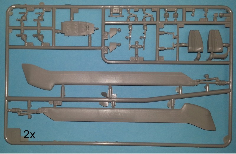 Markantester Unterschied zu den früheren Ausführungen ist der FLIR-Sensor auf der Nase, welcher selbstverständlich von Revell umgesetzt wurde. Die Form zeigt fast keine Alterungserscheinungen in Form von Fischhäuten oder ähnlichen. Ich habe nur eine dünne Haut bei einem Rotorblattanschluss gefunden. Der Bau beginnt mit dem Innenraum, welcher komplett vorhanden ist und über viele Details verfügt.