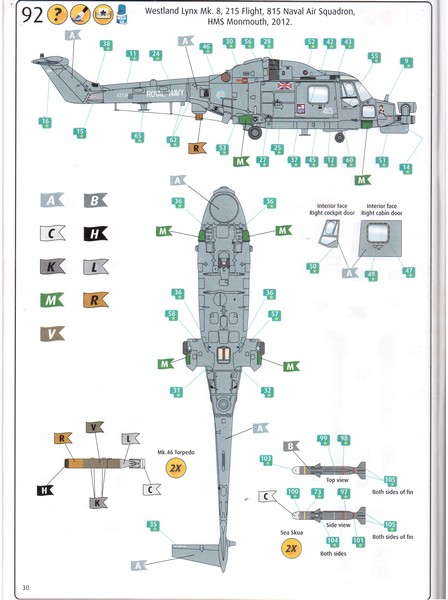 Im Lieferumfang findet man an Bewaffnungsoptionen zwei Stingray Torpedos oder zwei Sea Skua Raketen sowie ein Maschinengewehr für die Backbordseite. Des Weiteren ist auch die Rettungswinde auf der Steuerbordseite vorhanden. Auch diese Bauteile sind sehr fein und detailreich ausgeführt. Der Heckrotor und der Hauptrotor sehen ebenfalls gut aus und drehen auch jeweils in die richtige Richtung. Dies ist ja beim einigen Hubschrauberbausätzen leider nicht immer so.