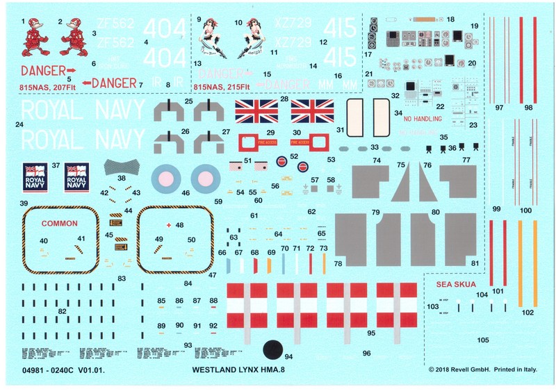 Modell: In der bekannten, etwas labilen Faltschachtel kommt hier die letzte Variante dieses Marinehubschraubers auf den Markt. 2012 ist dieser Bausatz als deutscher Mk.88A und 2013 dann als Royal Navy HAS.3 erschienen. 268 Teile in grauen und durchsichtigen Plastik an 18 Spritzlingen enthält der Bausatz, welche sich am Ende zu einem beeindruckenden Modell mit einem Rotordurchmesser von rund 40 cm zusammenfügen. Daher zu recht die Einstufung in Level 5.