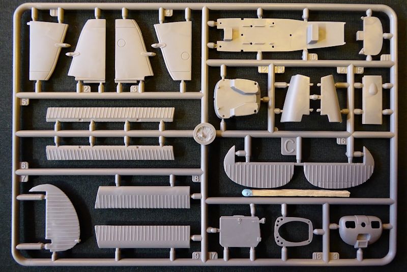 Sämtliche Ruder und Klappen liegen als separate Bauteile bei. Highlight ist der kleine, fein detaillierte Continental-Motor, der sich für eine geöffnete Darstellung des Motorraumes geradezu anbietet.