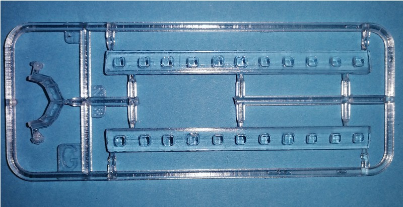 Interessanterweise ist das Höhenleitwerk so gestaltet, dass eine einteilige Hinterkante vorhanden ist. Die Teile für das Fahrwerk sind von der Detaillierung her gut gestaltet, wenn auch vielleicht sie etwas feiner sein könnten. Von der Stabilität sehe ich dafür kein Problem. Wie schon gesagt, finden wir auf dem Rahmen mit den Klarsichtteilen neben der Cockpitverglasung auch die Streifen mit den Kabinenfenstern. Der klare Kunststoff ist leicht schlierig, was bestimmt nach einem Bad in Future oder ähnlichen sich verbessert.