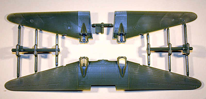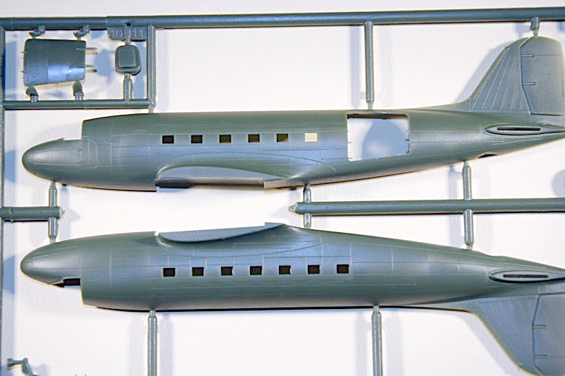Das Höhenleitwerk besteht aus jeweils einem Teil. Die drei Hälften für die Flügel sind so gegossen, dass sich die korrekte positive V-Stellung von alleine ergeben sollte. Der Rumpf soll am Ende platt auf die einteilige untere Fläche gesetzt werden. Dieser weist außerdem durchbrochene Rumpffenster auf, dies ist eine Steigerung gegenüber der bisherigen Lösung von Roden bei der DC-6 und -7, wo ein klares Cockpitfensterteil mit Nassschiebebilder für die Passagierfenster kombiniert werden sollte.