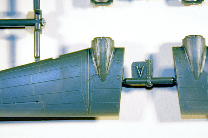 Neben diesem Merkmal legt der Hersteller die Eingangs- und Frachttür separat bei. Wenn man diese jedoch offen darstellen will, sind einige Arbeiten nötig, da keine Kabine bzw. wenigstens ein Boden vorhanden ist. Ich könnte mir vorstellen, das evtl. später noch eine zivile Variante erscheinen soll und man dieses Teil dann ersetzt mit einem Teil mit Standardtür. Die Oberflächen des Rumpfes, der Trag- und Stabilisierungsflächen verfügen über sehr feine Gravuren und Details. Eine Lackierung mittels Airbrush ist hier Pflicht. Die negativen Gravuren sind sehr gleichmäßig gezogen, auch eine Verbesserung gegenüber den früheren Werken von Roden, wo manches etwas frei Hand gemacht wirkte.