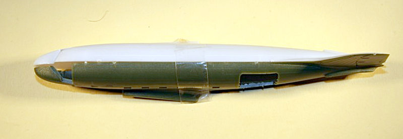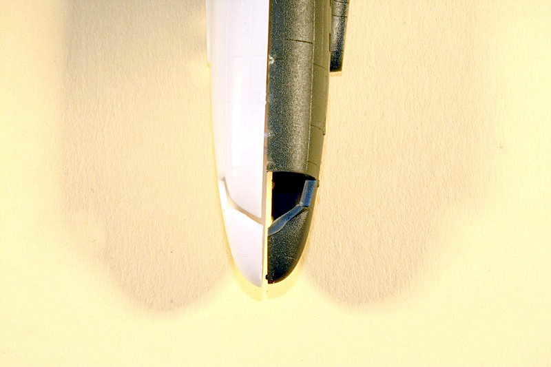 Die Rümpfe von Roden(Grün) und von Minicraft(Weiß) im Vergleich. Ausgerichtet an der Öffnung für Spornrad.