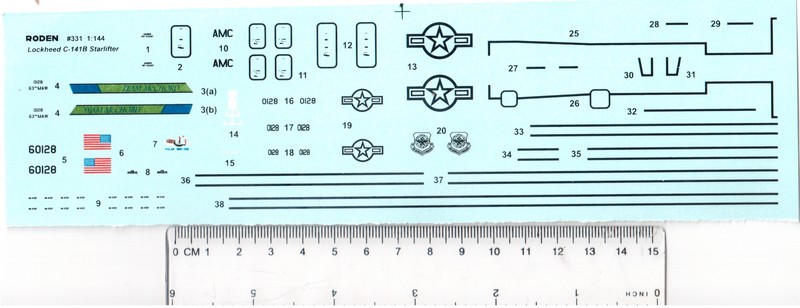 Fazit: Roden scheint sich in 1/144 den Transporter der U.S. Air Force verschrieben zu haben. Das man nun eine C-141B Starlifter in Plastik hat, ist schon toll. Etwas verwunderlich ist bei dieser Ausgabe allerdings die mangelhafte Recherche zu den Abziehbildern. Aber wie ich schon oben geschrieben habe, ist eine Korrektur grundsätzlich möglich. Zusammen mit dem Bogen von Caracal Models bieten sich noch ganz andere Möglichkeiten. Daher kann ich diesen Bausatz für fortgeschrittene Modellbauer empfehlen.