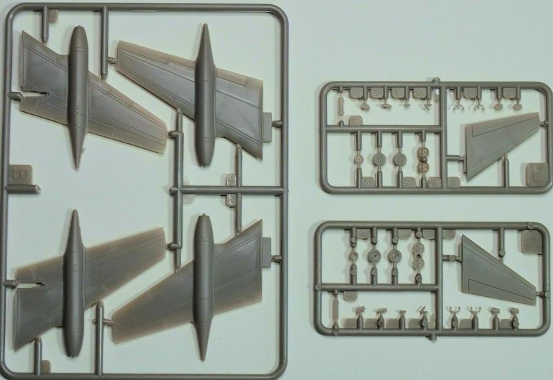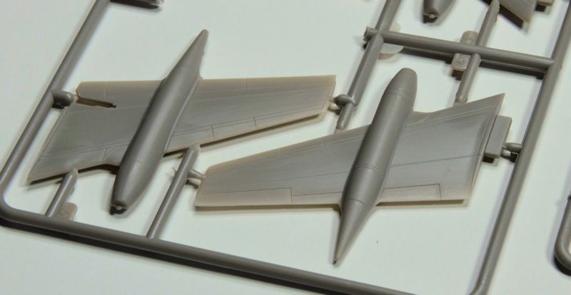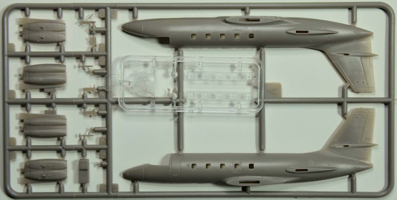 Bausatz: Es handelt sich um einen Spritzgussbausatz, wie Roden ihn in den letzten Jahren gefertigt hat. Die Teile sind sauber gegossen und haben sehr feine Oberflächenstrukturen und Gravuren. Ein paar wenige Passzapfen helfen dabei, die Teile wie Rumpf und Triebwerke in die korrekte Form zu kleben.Die Kabinenfenster und das Cockpit sind in transparentem Plastik hergestellt. Fahrwerk und Antennen sind ebenfalls in den Gussrahmen. Kritikwürdig wären für mich die etwas lieblosen Triebwerkseinläufe. Im Vergleich mit dem Original wirken die Einlassdetails ein bisschen klobig.
