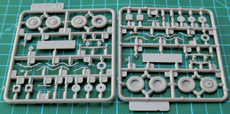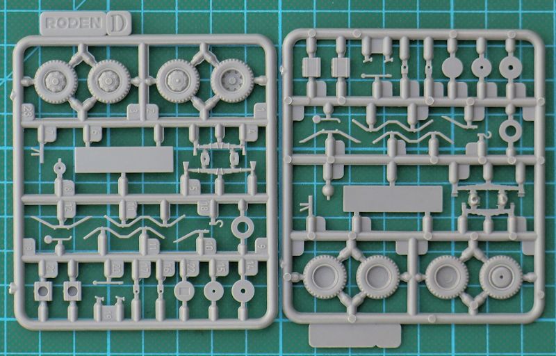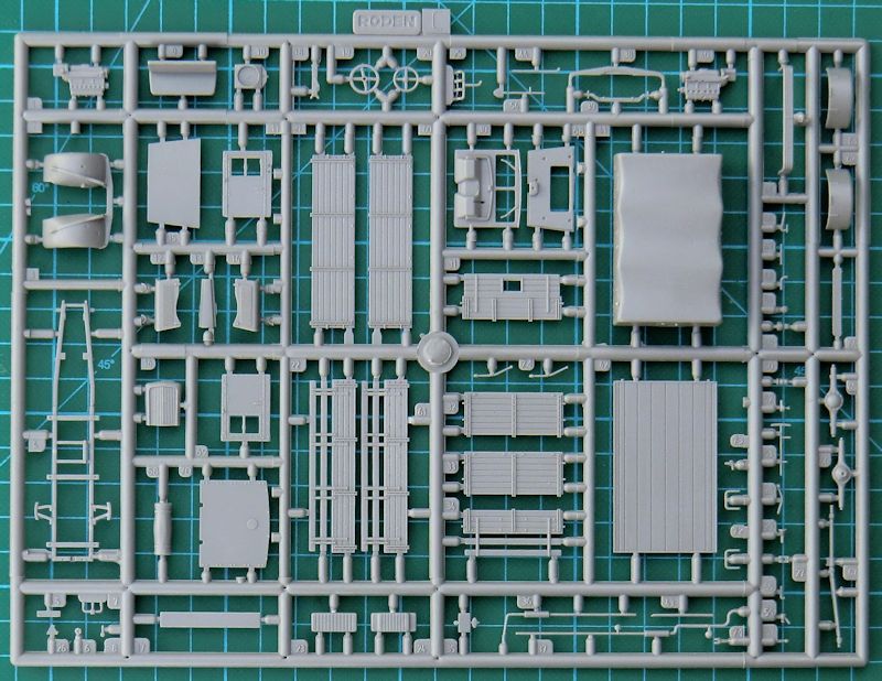 Bausatz: Roden liefert nun die finale Variante des Opel Blitz Dreitonners in 1/72 aus. In dem sehr großen praktischen Stülpkarton befinden sich gut verpackt drei graue Spritzlinge mit 126 Teilen, einen Fotofilm, einen Decalbogen und die Bauanleitung. Entsprechend des Vorbilds gibt es erhabene und versenkte Strukturen. Die Abspritzung der Teile ist sehr ordentlich und kann durchaus inzwischen mit den "Großen" auf dem Markt mithalten.