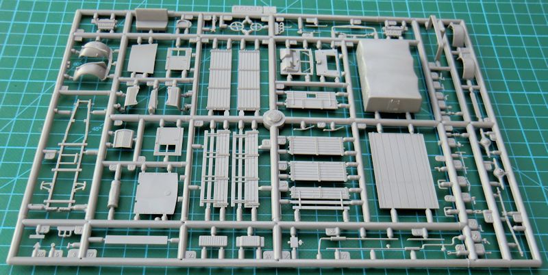 Die gesamte Ausrüstung wird einzeln auf das Modell geklebt. Somit kann auch ein ziviles Fahrzeug nachgebaut werden. Für die gut detaillierte Pritsche gibt es eine Plane nebst Spriegel.