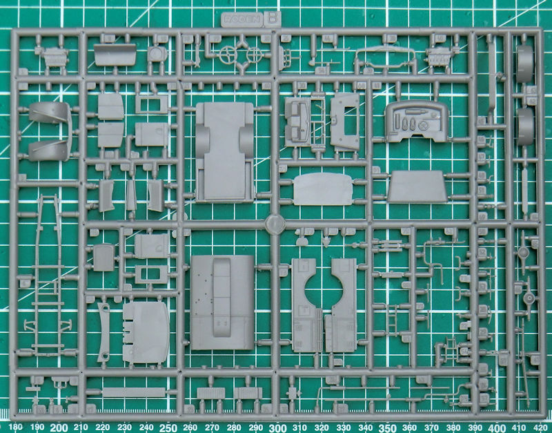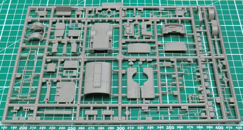 Interessant ist der Tankaufbau. Immerhin gibt es hinter den hinteren Klappen eine strukturierte Wand mit den passenden Details. Die im Original klappbaren Motorhauben sind so zu dick, dass man sie offen lassen könnte. Hier kann man vielleicht tricksen indem man die Kanten anschleift.