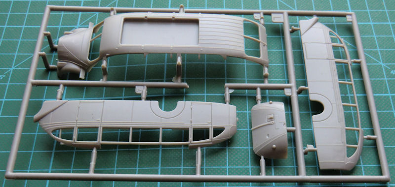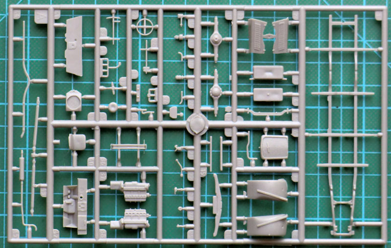 Das Modell erhält einen Motor samt Lüfter, Lichtmaschine und Kühler. Weiterhin gibt es ein recht detailliertes Fahrgestell. Natürlich geht es im Fahrgastraum auch recht ordentlich weiter. So sind die Einzelsitze und ein detaillierter Fahrerplatz vorhanden. Weiterhin gibt es im Heck noch gegenüberliegende Bänke. Die Verglasung der Fenster soll aus klarer Folie entstehen. Im Gegensatz zu den bisherigen Bausätzen gibt es nur eine Vorlage zum Zurechtschneiden und keine Folie selbst.