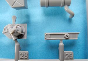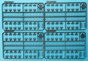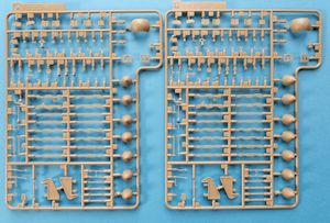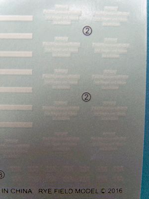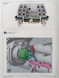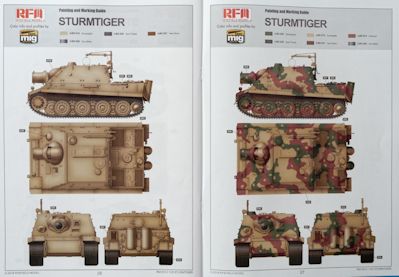 Bauanleitung/Bemalung: Die auf hochwertigem Papier gedruckte Anleitung enthält sogar einige Farbbilder von komplexen Montagestufen, um die Position und Zusammenhänge der Einzelteile bildlich hervorzuheben. Durch diese Gestaltung wird man ohne Probleme durch die insgesamt 30 übersichtlichen Baustufen geführt. Die einzelnen Spritzlinge sind mit durchbrochenen Buchstaben versehen, die auch bei Takom verwendet werden und für gute Übersich bei der Teilesuche sorgen.