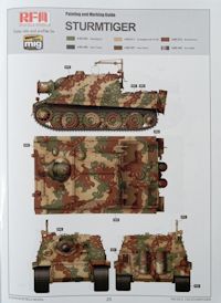 Die Farbangaben beziehen sich auf zwei verschiedene Dreifarbtarnungen sowie einer in einheitlichem Dunkelgelb. Für den Innenraum gibt es eine eigene Farbkarte, welche die einzelnen Bereiche der Einrichtung farblich darstellt. Die Farbangaben beziehen sich ausschließlich auf das Sortiment von MiG.