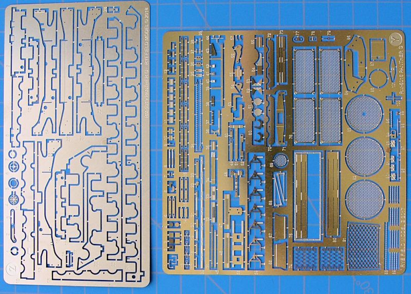 Zwei kleine Bögen mit Ätzteilen für die wichtigsten Bauteile sind vorhanden. Zum Beispiel für Lüftergitter, Griffteile oder Werkzeughalter.