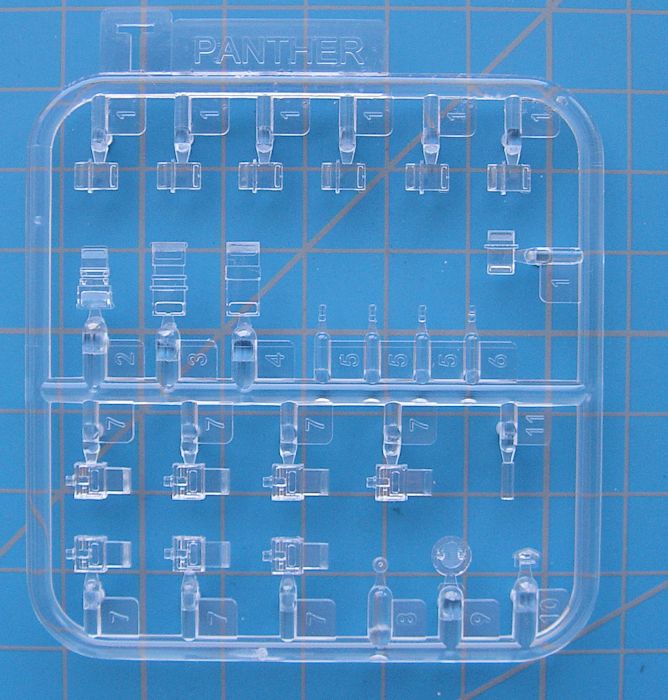Es gibt einen kleinen Bogen aus Klarplastik für die Scheinwerfer und Sichtblöcke.
