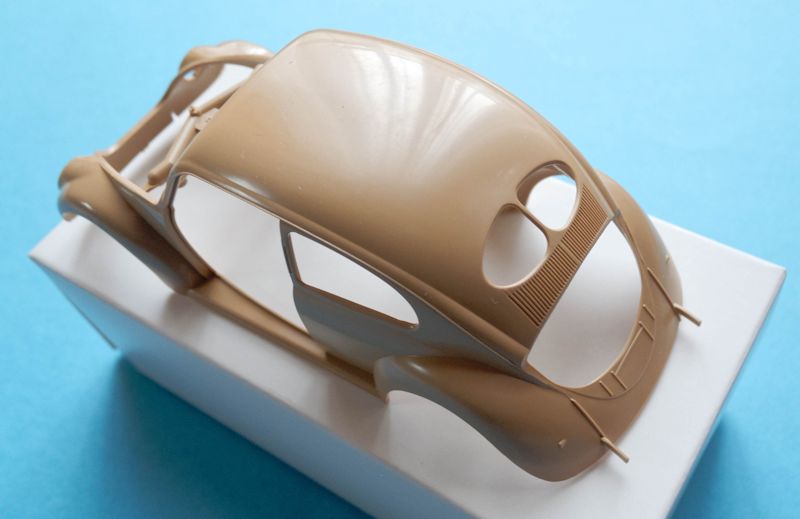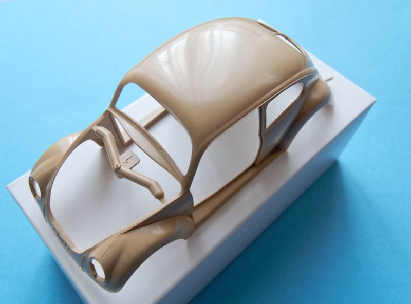 Gegenüber dem CMK Bausatz sind hier die Kotflügel bereits mit an die Karosserie angeformt, so dass hier keine Nähte zu verschließen sind.