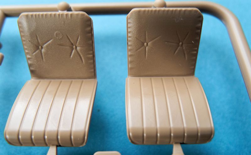 Als Besonderheit sind hier die Türen und Hauben gesonderte Teile und können somit offen dargestellt werden. Hierfür hat Ryefield auch die komplette Inneneinrichtung dieses Wagens gefertigt und sogar separate Scharnierteile für die Motor- und Kofferraumhaube beigefügt. Die Armaturen sowie Sitze besitzen eine sehr schöne Struktur und Maserung. Die Scheiben sind so konzipiert, dass sie von innen eingebaut werden.