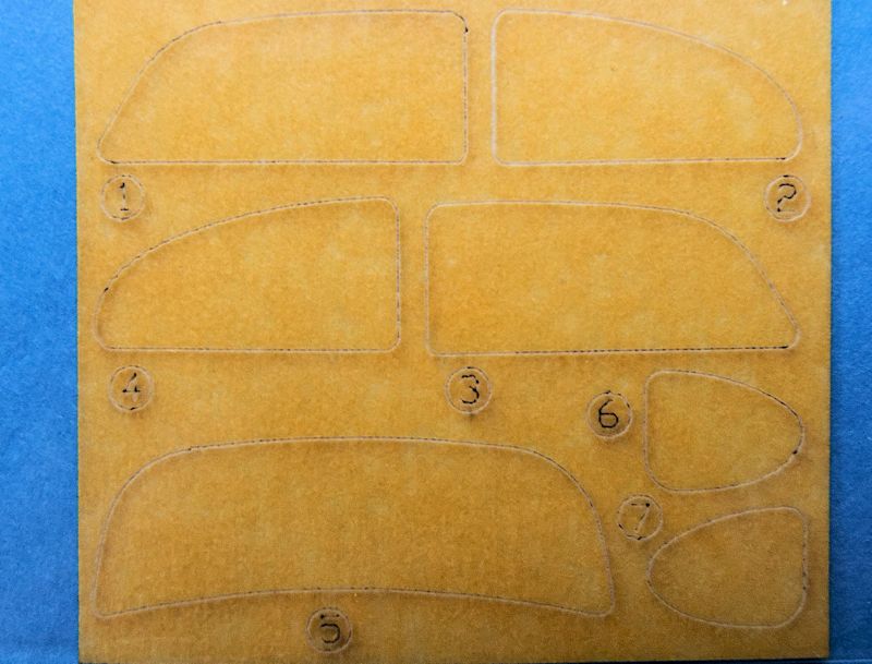 Für die Lackierung liegt sogar ein kleiner Bogen mit Abdeckmasken bei, die genau für die einzelnen Fenster passen. Das ist wirklich große Klasse und erleichtert den Bau.