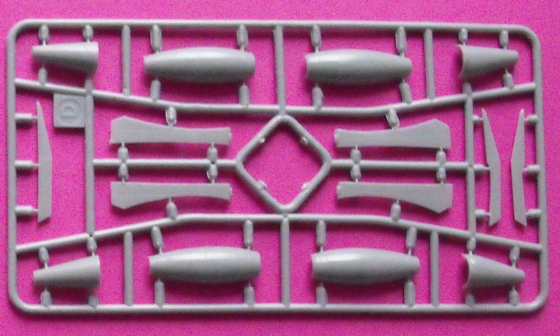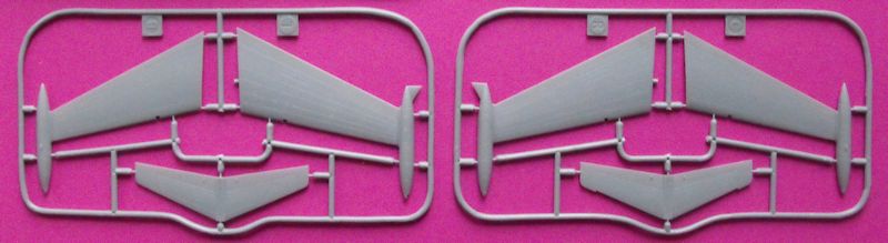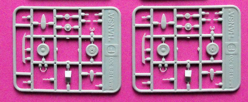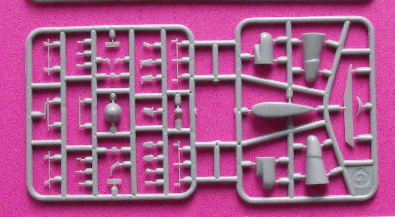 Das Modell wird aus 187 Bauteilen erstellt, wobei für die ECM-Variante nicht alle benötigt werden. Es sind insgesamt neun Gussrahmen vorhanden, acht graue und ein Klarsichtrahmen mit den Fenstern und den Landescheinwerfern bzw. den Kollisionswarnleuchten. Hat man alles zusammengebaut, so bekommt man ein Modell das größenmäßig etwa einem WK.II-Jäger in 1:48 entspricht: Länge 232mm und eine Flügelspannweite von 202mm.