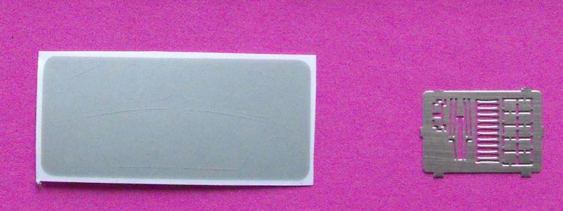Der kleine Fotoätzteilbogen mit 26 Teilen ist für die umfangreichen Sensordarstellung, Triebwerksdetaillierung und die elektrostatischen Ableiter an den Hinterkanten gedacht. Die beiliegenden Masken sind bereits vorgestanzt und sollen die Fensterflächen beim Lackieren schützen.