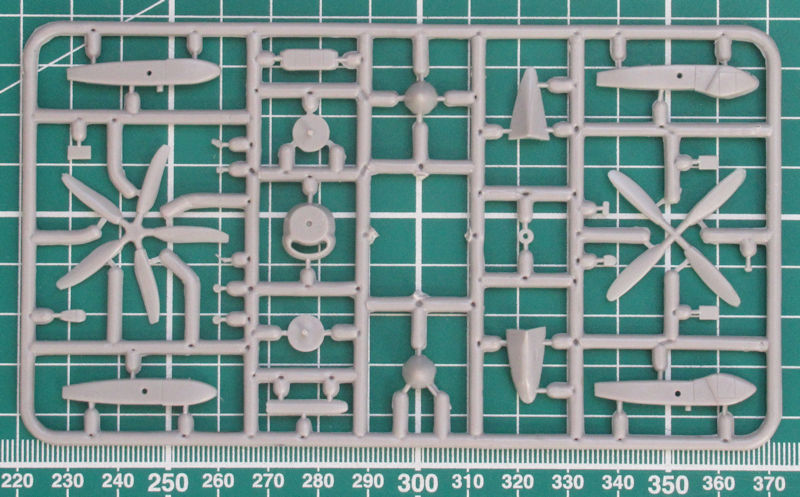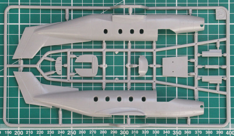 Der Bau beginnt hier mit dem Zusammenfügen der einteiligen Luftschraube und der Hochzeit mit dem Lufteinlauf. Danach folgt das Cockpit. Hier sind Teile zu verbauen. Da die großen Scheiben einen Einblick zulassen, sollte man vielleicht noch ein paar einfache Sitzgurte einbauen. Weiter hinten in der Kabine bleibt es leider leer. Das ist hier kein Problem, denn die große Tür bleibt zu und die meisten Fenster sind beim Original überlackiert worden. Bevor die beiden Rumpfhälften verklebt werden, sollte man das Gegengewicht im Rumpfbug nicht vergessen. Übrigens: Beim Seitenruder gibt es eine scharfe Hinterkante. Das gilt übrigens auch für alle anderen Ruder.