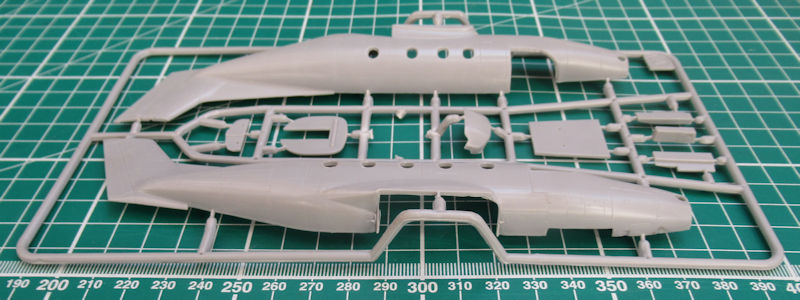 In dem attraktiven praktischen Stülpkarton befinden sich gut verpackt sechs hellgraue Spritzlinge mit 125 Teilen, ein klarer Spritzling mit 21 Teilen, ein kleiner Fotoätzteilbogen, ein Decal, eine mehrfarbige Bemalungsanleitung und die Bauanleitung.