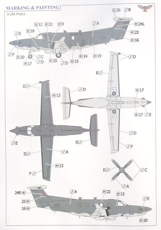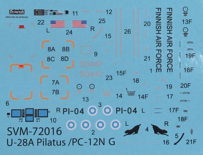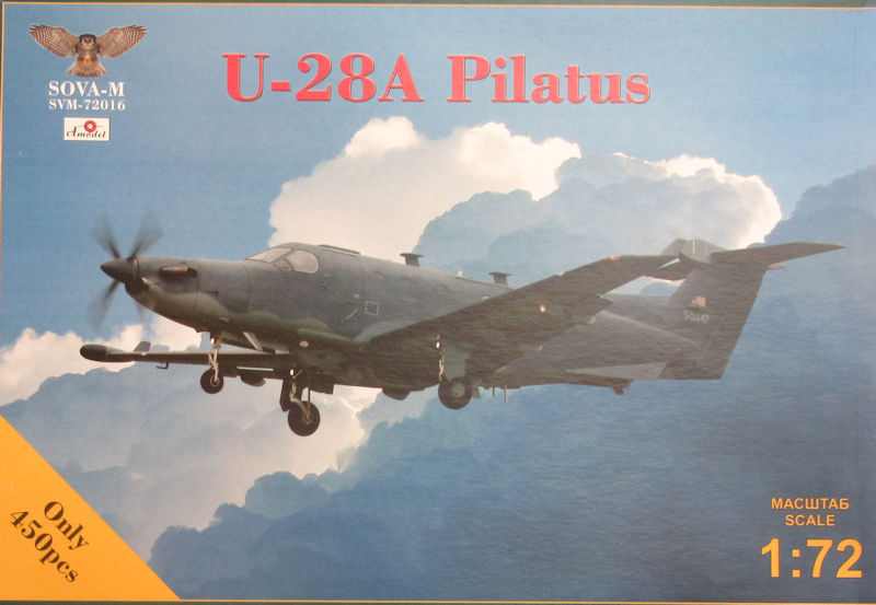 Bausatz: Bei SOVA-M aus Osteuropa erschien erstmals im Maßstab 1/72 ein Spritzgussbausatz der Pilatus PC-12. Dieser kam danach in anderen Bemalungsvarianten bei Amodel heraus. Allerdings gibt es die USAF-Variante U-28A nur bei SOVA-M exklusiv in limitierter Ausführung.