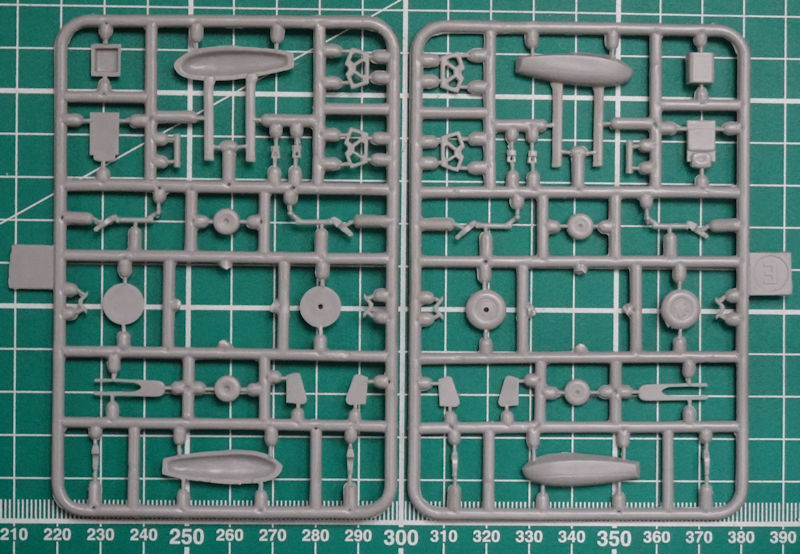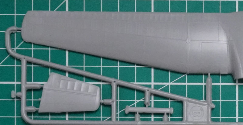 Der Hauptfahrwerkschacht muss bei dieser Variante abgedeckt werden. Die beiden Hälften des Höhenleitwerks werden klassisch aus vier Teilen zusammengefügt. Nur hier gibt es scharfe Hinterkanten. Die Fotoätzteile dienen zur Darstellung der Messeinrichtungen auf beiden Seiten des Rumpfbugs. Hier muss man entscheiden, ob nicht eine teilweise Anfertigung aus Stahldraht realistischer aussieht.